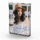 Celebrate your graduate's achievement with a custom graduation photo keepsake. The photo block features the graduate's vertical photo with "graduate" displayed in a trendy blue script. Personalise the modern graduation photo block by adding the graduate's name, school, and graduation year.