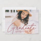 Celebrate the grad with our stylish photo graduation announcement. The graduation announcement displays the graduate's photo with "Graduate" in a burgundy modern calligraphy script overlay. Personalise the front of the modern graduation announcement by adding the graduate's name, school name, and graduation year. The announcement reverses to feature a trendy burgundy and white dotted geometric pattern. The design is perfect for both high school and college graduates.