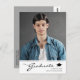 Amazing graduation announcement postcard, featuring design elements of modern text fused with elegant calligraphy script. The graduates photo highlights the front of the card while the back of the card offers personalised text spaces for information about the graduation and future journey. Backgrounds are white and a thin gradient on the front while the back of the card has black and white text on a silver grey background. To see more items like this, visit my store here at "www.Zazzle.com/LakeViewCardCo". Thanks