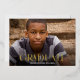 This contemporary graduation announcement features modern typography, real gold foil, and a full photo. On the front of the card, "Graduate" is written across the bottom in trendy gold foil capital letters. The graduate's name is below, and the graduation year is positioned inside the D in "Graduate." The typography design overlays a full-bleed horizontal photo of the new grad. Graduation party details can be added to the back of the card.