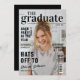 Magazine-inspired graduation party invitations are the perfect way to showcase all of the graduate's accomplishments in a visually stunning and personalised format. The invitation features a full cover photo of the graduate, capturing their unique personality and achievements. Along with the headline "the graduate", the invitation also includes a modern text template that is easy to personalise with details of the party such as date, time, and location.