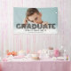 Celebrate your grad's hard-earned success in style with our uniquely designed graduation banner. It's not just a decoration; it's a bold statement piece that highlights the unforgettable journey of your graduate. Featuring a full-print photo, the title 'Graduate' in a modern-retro font, and personalised with the grads name, high school, and class year - it's the ideal keepsake to commemorate this milestone.