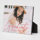 Celebrate your graduate's achievement with a custom graduation photo keepsake. The photo plaque features the graduate's horizontal photo with "graduate" displayed in a trendy red script. Personalise the modern graduation photo plaque by adding the graduate's name, school, and graduation year.
