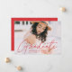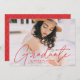 Celebrate the grad with our stylish photo graduation announcement. The graduation announcement displays the graduate's photo with "Graduate" in a red modern calligraphy script overlay. Personalise the front of the modern graduation announcement by adding the graduate's name, school name, and graduation year. The announcement reverses to feature a trendy red and white dotted geometric pattern. The design is perfect for both high school and college graduates.