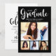 Celebrate your senior with this modern graduation invitation featuring a bold black “Graduate” script and a 4-photo collage layout. Personalise with the graduate’s name, school, and class year, then add party details on the coordinating “Lets Celebrate” back design. Clean black and white typography keeps it timeless for any graduate. Perfect for open house or grad party celebrations.