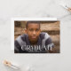 This contemporary graduation announcement features modern typography and a full photo. On the front of the card, "Graduate" is written across the bottom in trendy faux silver foil capital letters. The graduate's name is below, and the graduation year is positioned inside the D in "Graduate." The typography design overlays a full-bleed horizontal photo of the new grad. Graduation party details can be added to the back of the card.