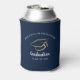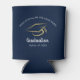 Graduation Navy Blue Custom High School Party Can Cooler you can easily customise with your school name. Featuring a graduate cap with script and modern typography.