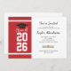 Add your year of graduation, name, and details of the venue with date to this modern bold red and white background with black typography graduation party invitation by using our "Personalise" button above
