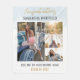 Photo collage gold script graduation party photo blanket for the new grad. Features 4 photos of the graduate, and the word "Congratulations" is set. Add their name, school college, and class year of graduation by clicking the "Personalise" button.