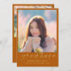 Modern Graduation 2 Photo Gold Script Cap Orange Announcement