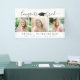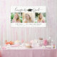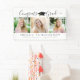Modern Graduation 3 Photos Script White Black. Congratulate and celebrate your graduate with this modern banner sign personalised with three photos, name, school name and class year and/or your custom text and the title CONGRATS GRAD in a trendy calligraphy script accented with a black graduation cap against a white background. BANNER OPTIONS: The sample is shown in the 3x5' indoor style--other sizes and "outdoor" are available on the ordering page as well as the option of transferring the design to a foam board, poster, tapestry or other product. NEED IT FAST? Contact the designer for the link to the instant downloadable digital file to print locally. ASSISTANCE: For design assistance, contact the designer BEFORE ORDERING via the Zazzle Chat MESSAGE tab below or email makeitaboutyoustore@gmail.com.