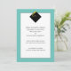 Classic graduation announcements for the Class of 2025 grad featuring elegant black cap and gold tassel on teal blue background.