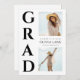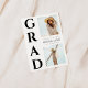 Announce your milestone achievement with a stylish graduation announcement that combines modern design with personal touches. On the left side, the word "Grad" is strikingly stacked in bold black font, creating a strong visual statement. On the right side, showcase your journey with two cherished images, one at the top and one at the bottom. In the middle, clearly present all the important graduation details, ensuring family and friends have all the information they need to celebrate your accomplishment. This elegant and thoughtfully designed announcement captures the significance of your achievement and shares your joy with those who have supported you.
