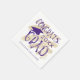 Modern, personalised, custom colour graduation party paper napkins featuring CONGRATS GRAD in hand lettered brush calligraphy typography with class year, graduate's name or other custom text and graduation cap or mortarboard in your choice of colours (shown in purple and gold). Create your own custom look by changing colours and filters in EDIT. NAPKIN OPTIONS: The sample is shown in the white cocktail size--other sizes and napkin colours are available on the ordering page. ASSISTANCE: For help with design modification/personalisation, colour change, transferring the design to another product or if you would like coordinating items, contact the designer BEFORE ORDERING via the Zazzle Chat MESSAGE tab or email at makeitaboutyoustore@gmail.com.