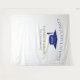 Modern graduation celebration backdrop for photo opportunities!  Glitter at top and bottom, graduation cap and lettering in blue, name template in gold.  Class of in gold glitter script lettering with template of year in white.  Add year, name and school name.