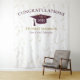 Modern graduation celebration backdrop for photo opportunities! Glitter at top and bottom, gold streamers from top edge, graduation cap and lettering in maroon, name template in gold. Class of in gold glitter script lettering with template of year in white. Add year, name and school name.