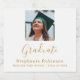 Celebrate your graduation party in style. Design features the word Graduate written with a modern gold script hand lettered style on a clean white background. Personalise by adding photo, graduate's name, school name, year. Easy to customise. Congratulations!