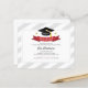 A modern graduation invitation card featuring a black graduation cap with yellow tassel, a red banner and grey and white chevron pattern. Easily customise this card by clicking the "Personlize" button. We have matching accessories and other graduation cards available in our store