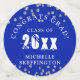 Decorate your graduate's graduation party with editable royal blue and silver confetti table confetti with editable class year (shown in royal blue and silver colours) Personalise with a graduate's name and your custom text. The background colours and text colour, font style, size and placement can be changed to coordinate with your school colours or party decorations in EDIT. Contact the designer via Zazzle Chat or makeitaboutyoustore.com if you'd like this design modified or on another product.