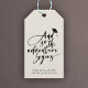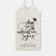 And so the adventure begins! Modern graduation celebration gift tag with an elegant script calligraphy design, a soaring grad cap and your custom text message of congratulations to the graduate below.