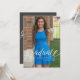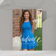This modern graduation script photo design features flowing typography paired with a clean portrait layout. Ideal for Class of 2026 announcements, it blends contemporary styling with elegant script accents for a balanced and polished look.