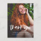 Modern graduation design, for high school or college, featuring the words "thank you" over full bleed photo. Easily personalise this simple design with your favourite pictures, your text and short "thanks" message (back).