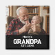 Grandpa Established Est. Modern Typography Name Year Custom Magnet with black background.. Choose how you call your grandfather, add more names and years for more grandchildren. Upload your favorite photo. Whether it's for a first-time grandpa or a seasoned pro, this magnet is guaranteed to bring a smile to his face!