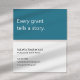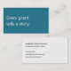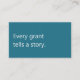 A modern, minimalist business card perfect for grant writing professionals. The front features a teal background with the phrase "Every grant tells a story" in soft white text. The reverse has a soft white background with dark charcoal grey text and space for your contact details. All text on the card is fully editable.