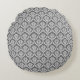 Modern Graphite Damask Pattern Round Pillow