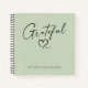 Attract that positive energy with a personalised "Gratitude Journal" notebook, featuring a unique custom - modern minimal design with "Grateful" in elegant handwritten ink script, a beautiful calligraphy style heart and your personalised name. In light sage green, black and grey or easily edit the primary colour as you like. A great gift for yourself and maybe someone else.