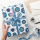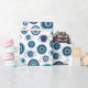 Hand-illustrated modern Greek evil eye pattern wrapping paper in Mediterranean blue and white.