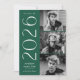 Honor your graduate with this rich green 3 photo graduation announcement featuring a bold vertical “2026” design that makes a confident statement. Three favorite photos are arranged in a clean stacked layout, creating a balanced and modern presentation that highlights the graduate’s personality. Customize with the graduate’s name and school for a personalized finish. The reverse side features a coordinating geometric design that completes the overall look. A polished photo collage graduation announcement designed for both high school and college seniors celebrating the Class of 2026.