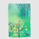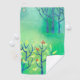 A contemporary modern abstract landscape painting in fresh green featuring birds, a hedgerow and some distant woodland trees. Original art by Nic Squirrell.