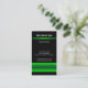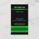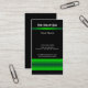 This fun modern business card is too cool! This business card has a black background and at the top, is a single green stripe made of diagonal stripes. Towards the bottom is a larger block of the same striping with your text in white between. A great business card for your tech related company - or even for your own personal use.