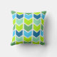 Modern Green and Blue Geometric Chevron Pattern Cushion