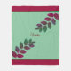 Modern stylish beautiful green and burgundy plant leaves Fleece Blanket. Text can be personalised.