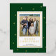 Celebrate elegant Christmas sparkle by sending the Modern Green and Gold Foil Christmas Photo Card this holiday season. The single photo holiday card features a rich dark green background, beautifully arranged gold foil dots and a luxe gold Merry Christmas to make your greeting shine. Your photo is delightfully framed within a contrasting white rectangle, bordered in a gold foil stroke. The back of the card finishes the classic look with the rich dark green background. A perfect card for those who love minimalism combined with a touch of luxury.