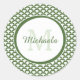 Modern Green and White Scallops Monogram and Name Classic Round Sticker