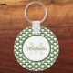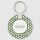Modern Green and White Scallops Monogram and Name Key Ring