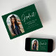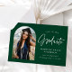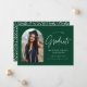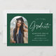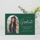 Trendy graduation announcement featuring the graduate's photo framed by a green arch with "Graduate" in a white handwritten script. Personalise the front of the arch graduation announcement card by adding the graduate's name, graduation year, school name, and future plans. The photo graduation announcement reverses to display a green and white dotted pattern. The announcement is suitable for both high school and college graduates.
