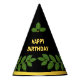 Modern Green Bay Leaves Birthday on Black Party Hat