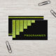 Modern green, black vertical stripes programmer eye catching business card featuring lime green vertical stripes made of faux green foil with crumbled texture on black background. Note that there is no any real green foil but a flat picture of it.