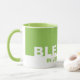 Modern green BLESSED In Jesus' Name Christian mug, with the word BLESSED in WHITE typography and IN JESUS' NAME in GREEN. All text is CUSTOMIZABLE, so you can create your own text and add your favourite Scripture reference. This inspirational Christian mug would make a great gift for Christmas, Birthdays, Mother's Day, Father's Day, etc. Other colours (incl glitter versions) are available.