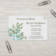 This custom business card features contemporary blue and green floral stems on a white background with green text. You can add, remove or customise the text with your own information on the product order page. This business card design would be perfect for many different professions.