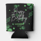 A modern, stylish and glamourous birthday can cooler. This design features a vibrant typography "Happy Birthday" with green gradient bokeh on a black background. Personalise and add your party details. Make your milestone birthday an extraordinary event!
