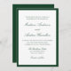 Set a refined and timeless tone with this dark green wedding invitation, framed by a deep green border that brings a classic, composed feel to the design. The couple’s names are displayed in graceful calligraphy, with the wedding details presented below in traditional serif lettering for a clean, balanced layout. Well-suited for estate weddings, formal venues, and celebrations inspired by natural surroundings, this colorway offers a polished and elegant presentation that feels both sophisticated and enduring.