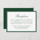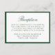 This reception enclosure card is framed by a rich dark green border and features “Reception” in graceful calligraphy with your reception details arranged below in classic serif text. The deep green tone brings depth and formality to the layout, creating a timeless presentation well-suited for estate, traditional, and modern classic wedding settings.