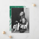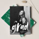 Celebrate your graduate's achievement with this modern graduation announcement, featuring their photo and "grad" in a white brush script overlay. Personalize the front with the graduate's name, school, and graduation year for a personal touch. The back showcases a vibrant green brushstroke design, adding a pop of color and creativity. Perfect for high school and college graduates, this stylish announcement is a memorable way to share the special moment with family and friends.