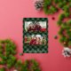 Modern and festive plaid photo holiday card features two of your favourite horizontal photos against a green and black buffalo plaid check patterned background. Personalise the custom "We Wish You A Merry Christmas" text with your family name and the year. The back of the card includes an additional horizontal photo with custom holiday message wording.