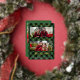 Modern Green Buffalo Plaid Christmas Photo Foil Holiday Card